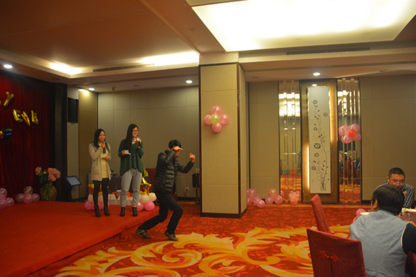 隨后的表演更是讓大家在這個本就歡樂的節(jié)目歡笑四溢。公司每個部門都有自己獨特的才藝,業(yè)務部的吹瓶,客服部的雙簧,電商部的歌曲等。雖然沒有時間排練,但是大家的表演天賦還有相對不錯的。