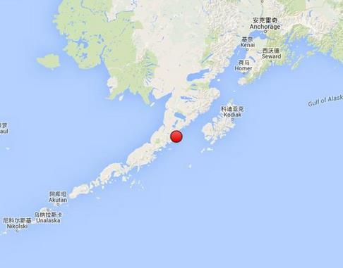 震源位于距離阿拉斯加奇格尼克湖(ChignikLake)北北東方向106公里左右的地點。