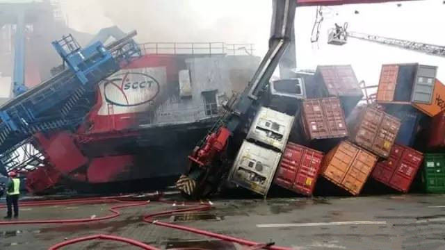 具體事故原因還在調(diào)查中,不過(guò)有消息稱是岸吊掉落到了該船,導(dǎo)致集裝箱起火,而且聽(tīng)說(shuō)其中一個(gè)被吊機(jī)裝掉的集裝箱內(nèi)裝載有依然的化學(xué)品。