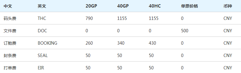 海運費$3600/20GP;$6100/40GP;$6100/40HC