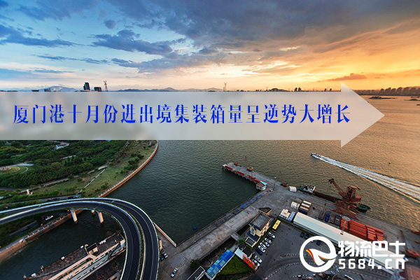 物流巴士獲悉,今年十月份廈門港共受理進出境集裝箱54.53萬標箱,比去年同期增長10.90%,其中重箱32.32萬標箱、空箱22.21萬標箱,同比分別增長3.14%、24.54%。
